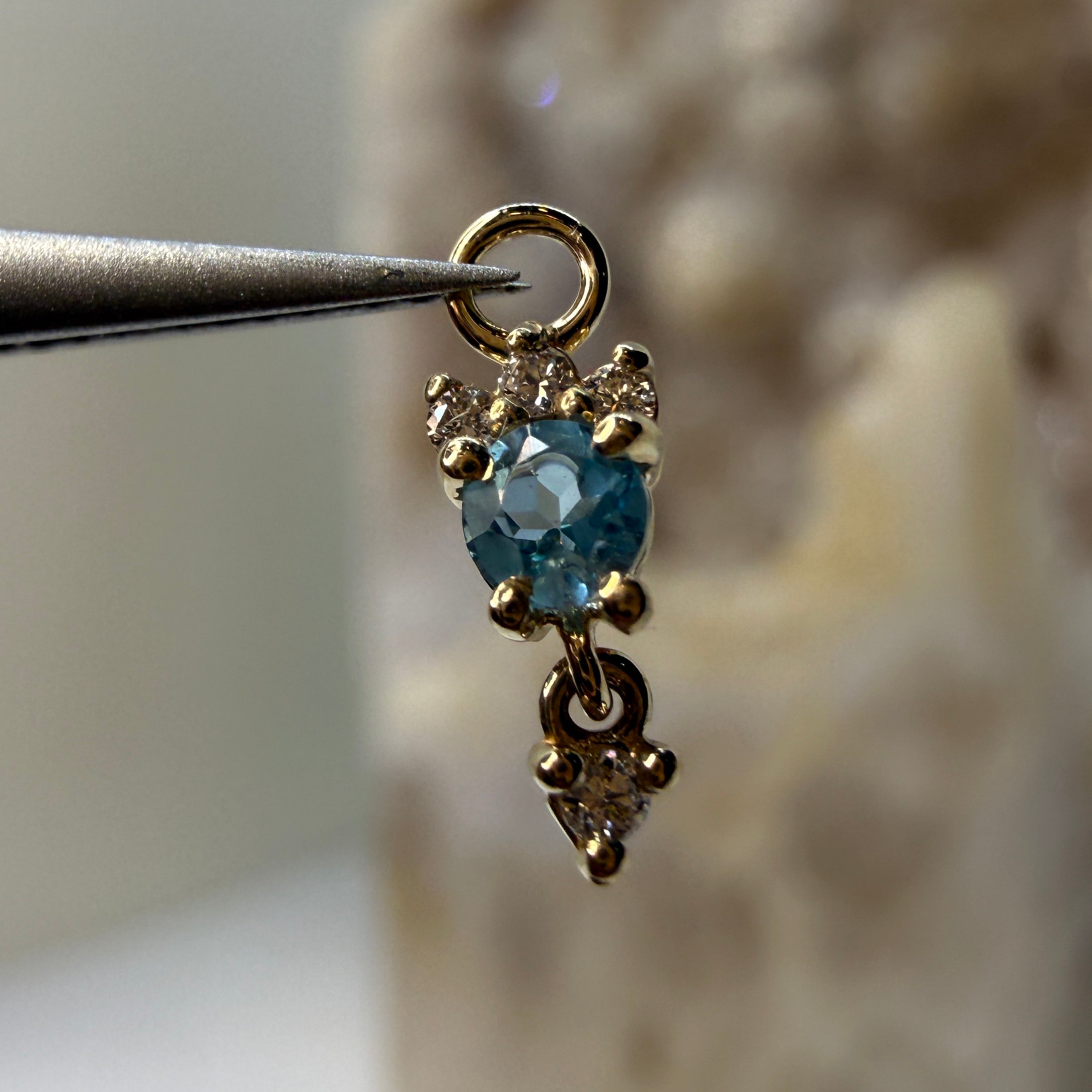 Leia Charm - Blue Topaz + Diamond