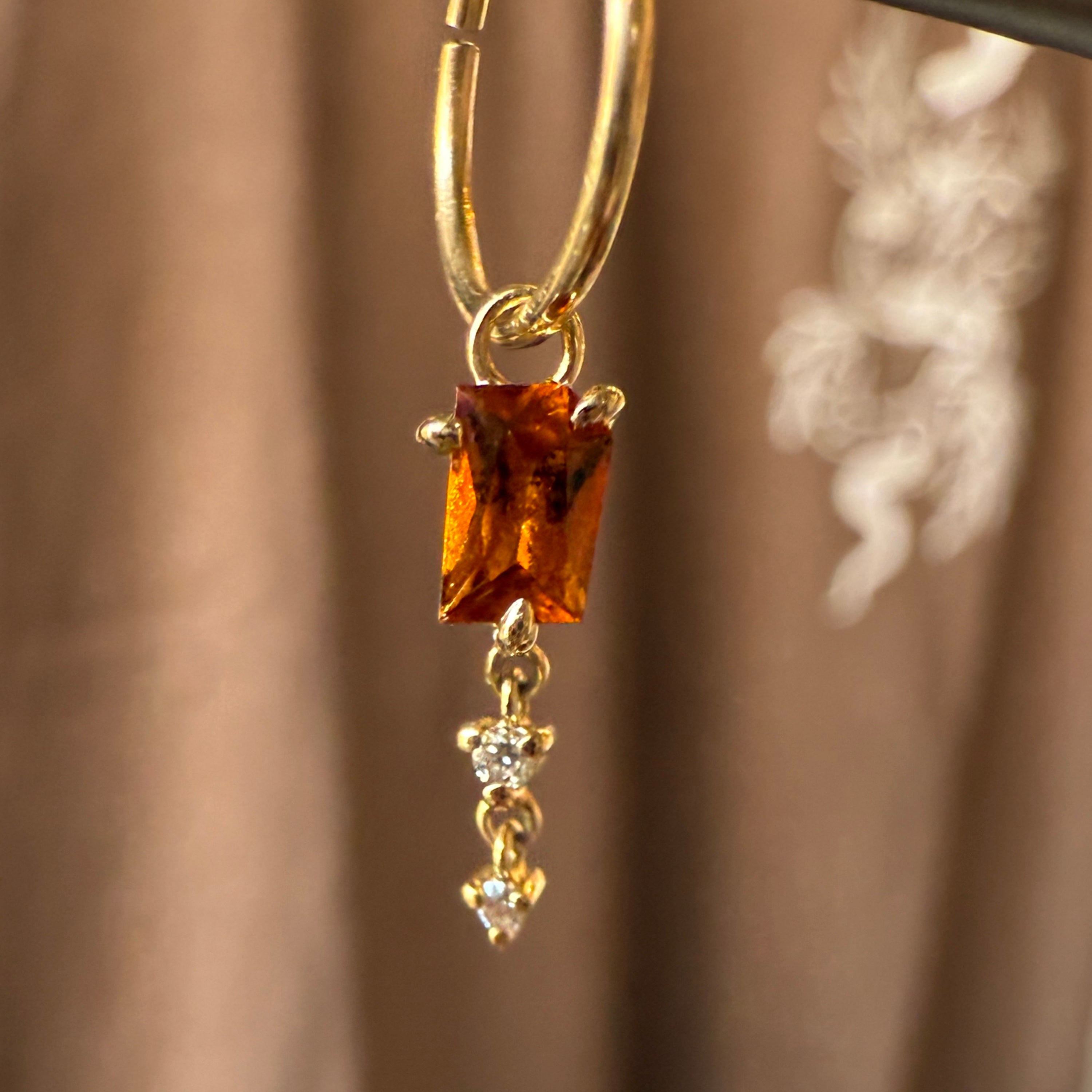 Hessonite Garnet + Diamond Cascade Charm- Limited Edition